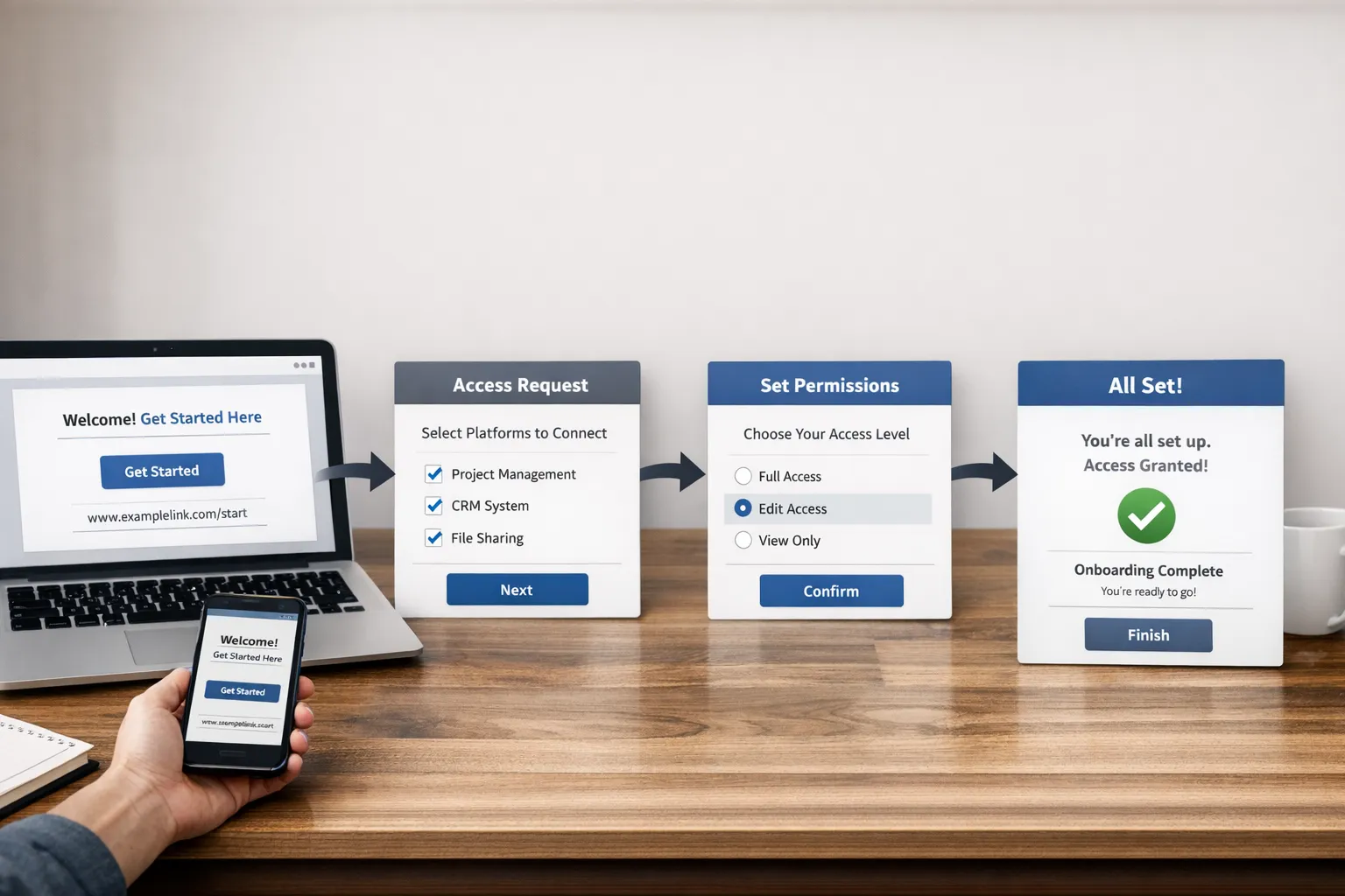 How do we keep onboarding secure without slowing it down? Use role-based, least-privilege access, avoid password sharing, and standardize what you request by service package. A single, trackable onboarding flow also reduces insecure side-channel sharing.
