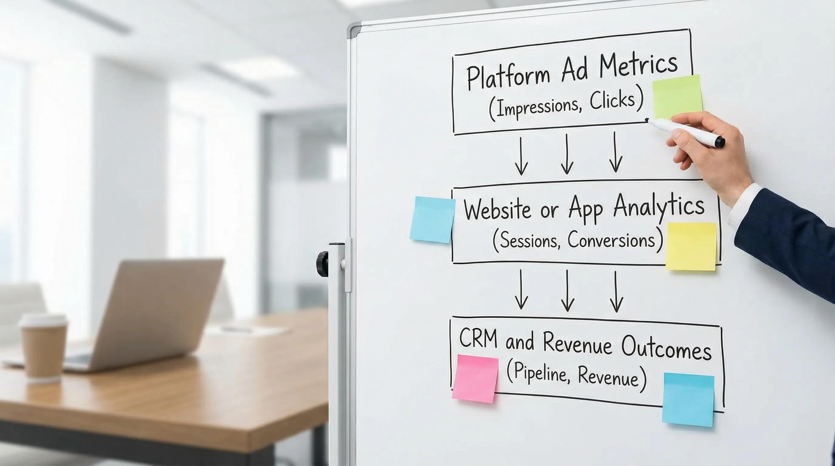 If your team only tracks layer 1, you optimize for cheap clicks. If you only track layer 3, you learn too late. The goal is a tight loop: platform signals inform decisions, but business outcomes validate them.