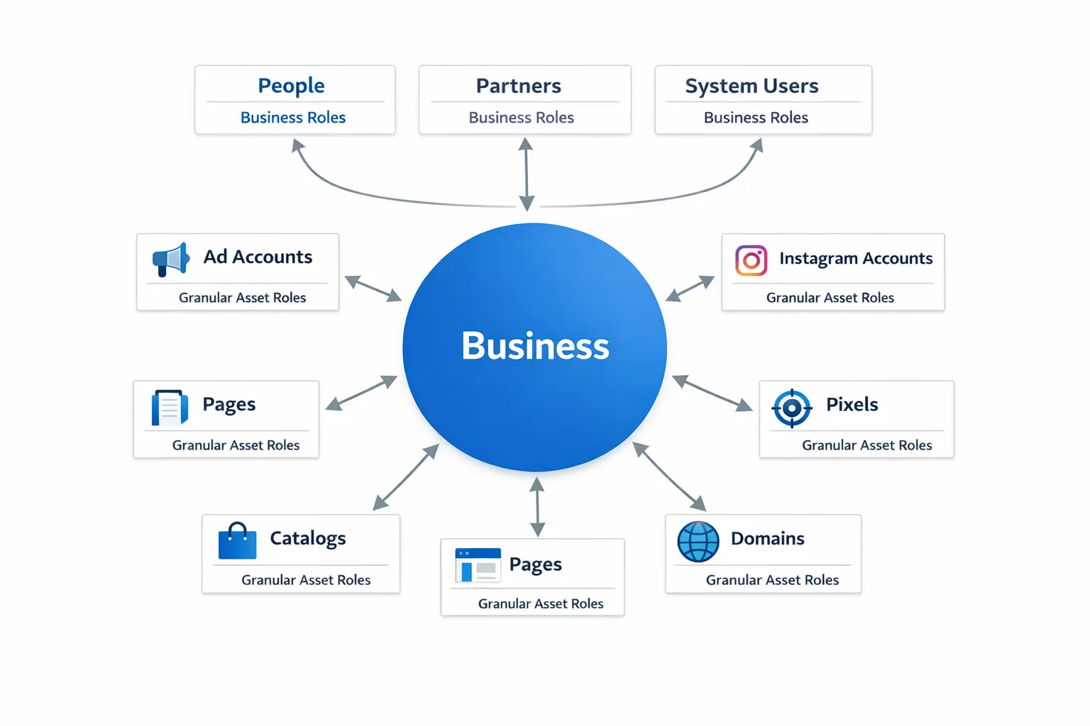 Meta Business access has three layers that work together: