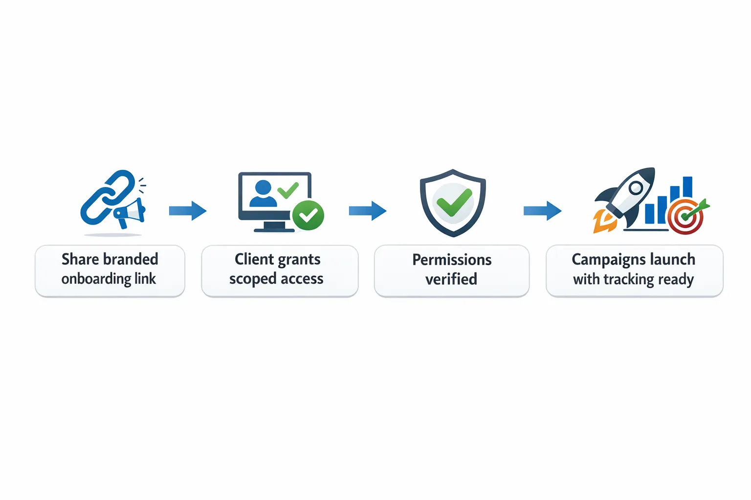 This is exactly the operational gap that client onboarding software can solve. For example, Connexify helps agencies and service providers set up secure, multi-platform access through a single branded link, with customizable permissions, optional white-labeling, and API/webhook integrations. If you are an agency operator, it can reduce onboarding time from days to seconds. If you are the client hiring an agency, seeing a structured onboarding flow like this is often a sign you are dealing with a mature operator.
