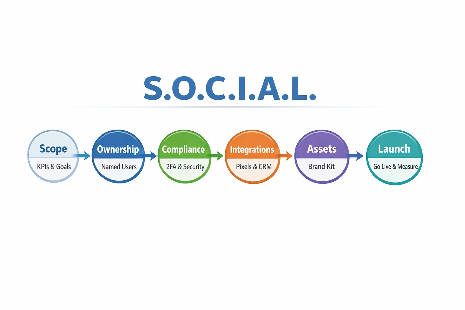 How long should onboarding take for a standard engagement? With a clear scope and the right tooling, you should reach verified access within 24 to 48 hours and ship a first post or ad within 72 hours.